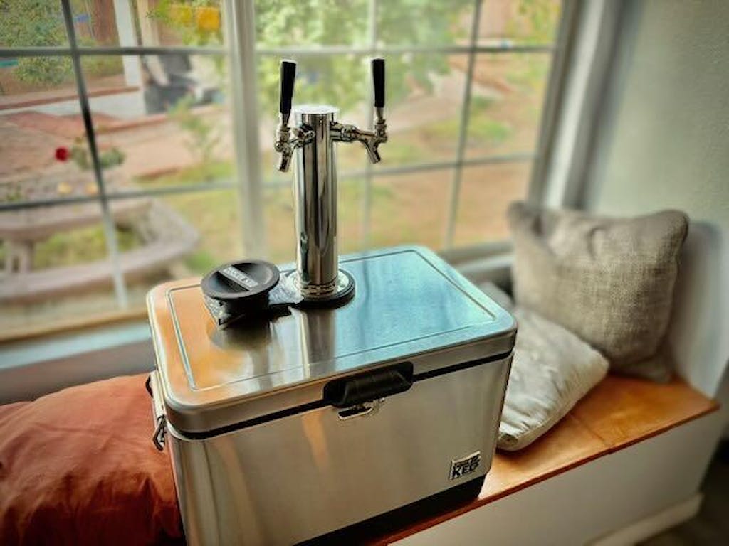 - Stainless steel insulated draft tower with two taps and attached draft lines